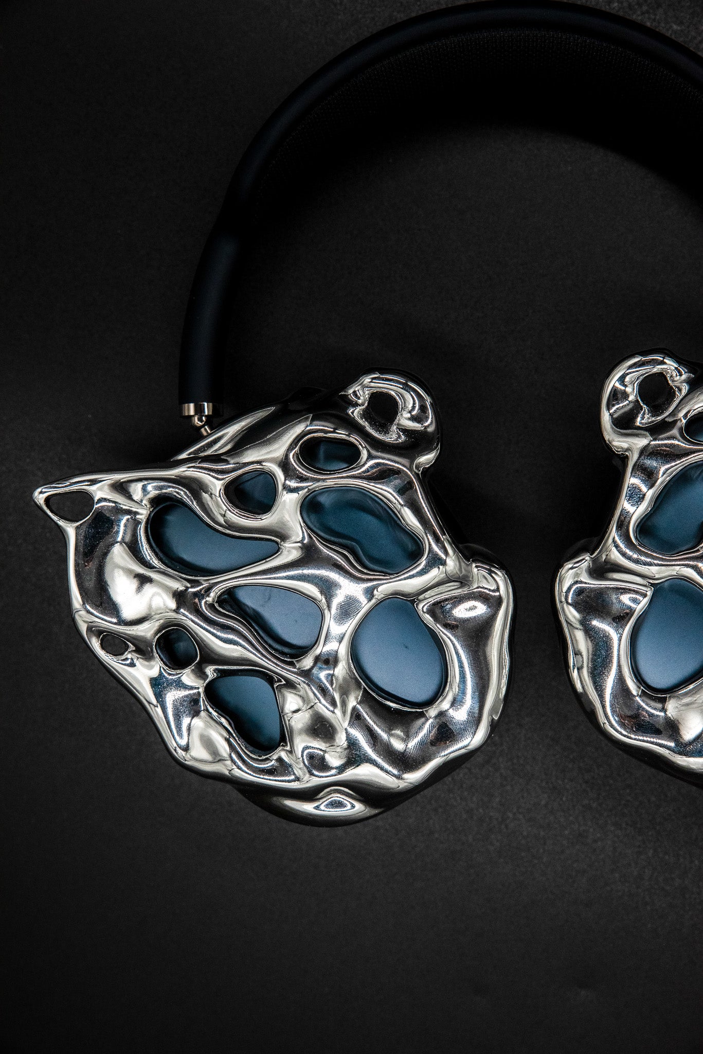 Diese flüssig gestalteten Cover verwandeln deine AirPods Max in ein Statement-Piece mit industriellem wirkenden Edge. Die glatte Chromschicht reflektiert Licht wie geschmolzenes Metall, während das Kunstharz-Fundament Stabilität und Schutz bietet und zusätzlich leicht genug zum Tragen ist.
