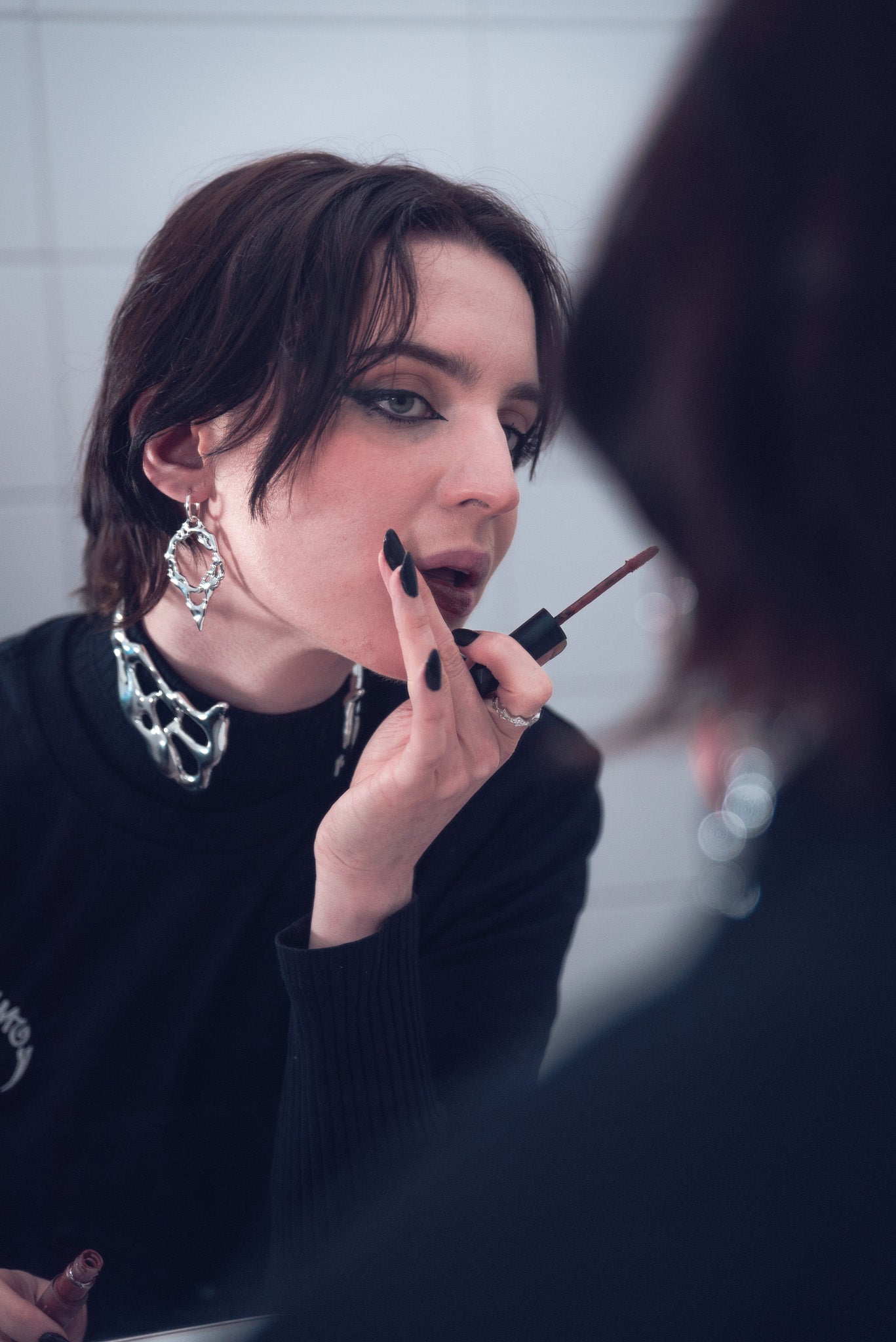 Dieses Hals-Statement verwandelt deinen Look in pure Rebellion. Die glatte Chromoberfläche reflektiert Licht wie geschmolzenes Metall, während das robuste Kunstharz-Fundament unerschütterliche Stabilität garantiert. Leicht genug für den ganzen Tag, schwer genug in der Wirkung.